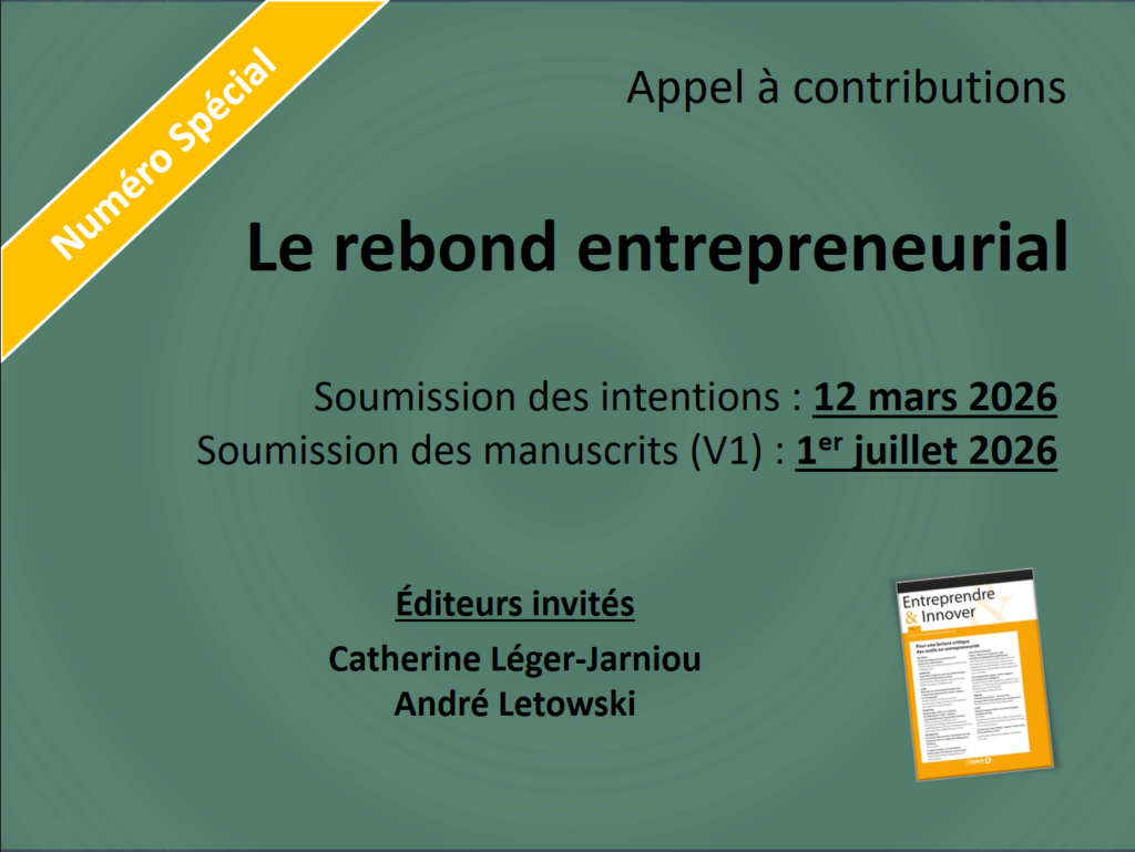 Ce numéro spécial revêt donc une importance réelle pour réinterroger et réexaminer ce que signifie rebondir dans le champ de l’entrepreneuriat. Il invite à des approches pluridisciplinaires, critiques et des regards croisés entre chercheurs et praticiens. Il vise aussi à favoriser le dialogue pour nourrir la réflexion des praticiens, entrepreneurs, chercheurs, enseignants par des apports originaux et produire de la connaissance.