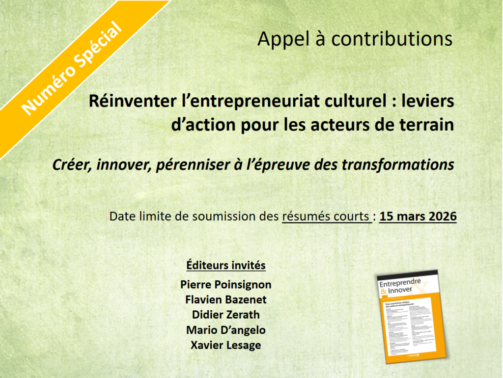 Ce numéro thématique entend analyser l’entrepreneuriat culturel comme un levier de transformation systémique, à la croisée des politiques publiques, des dynamiques sectorielles et des pratiques de terrain. Il s’agit de comprendre comment les entrepreneurs culturels participent activement aux grandes transitions écologique, numérique et sociale, tout en affrontant des tensions fortes :